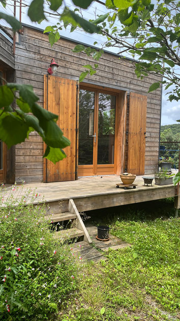 L'eco-gite en bois accueille 8 personnes avec ses 4 chambres doubles, 2 salles d'eau, 2 WC , une grande salle commune de 35 m2